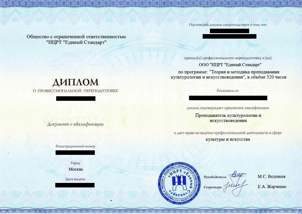 - Диплом о профессиональной переподготовке установленного государством образца. Срок действия: бессрочно